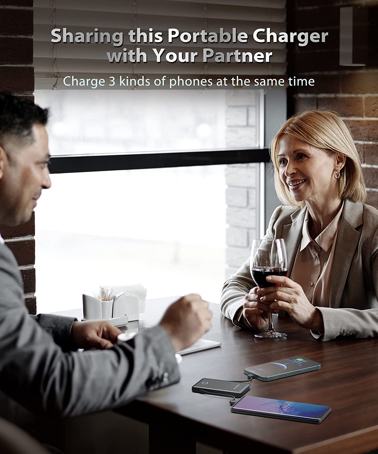 - What You’ll Get: 1* 6000mAh phone charger, 1* Micro USB Charging Cable for charging powerbank itself (charging cable for iPhone & type c charging cable & AC adapter NOT included), 1*User Guide, 12 months warranty and friendly & outstanding customer service.