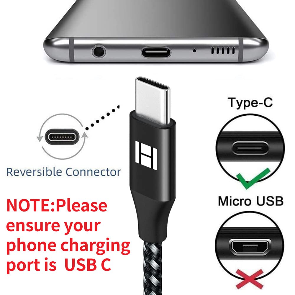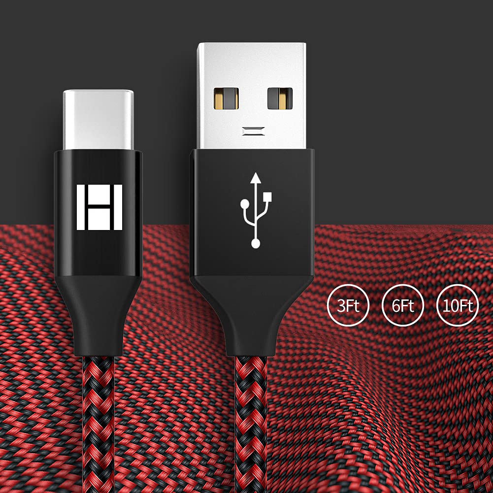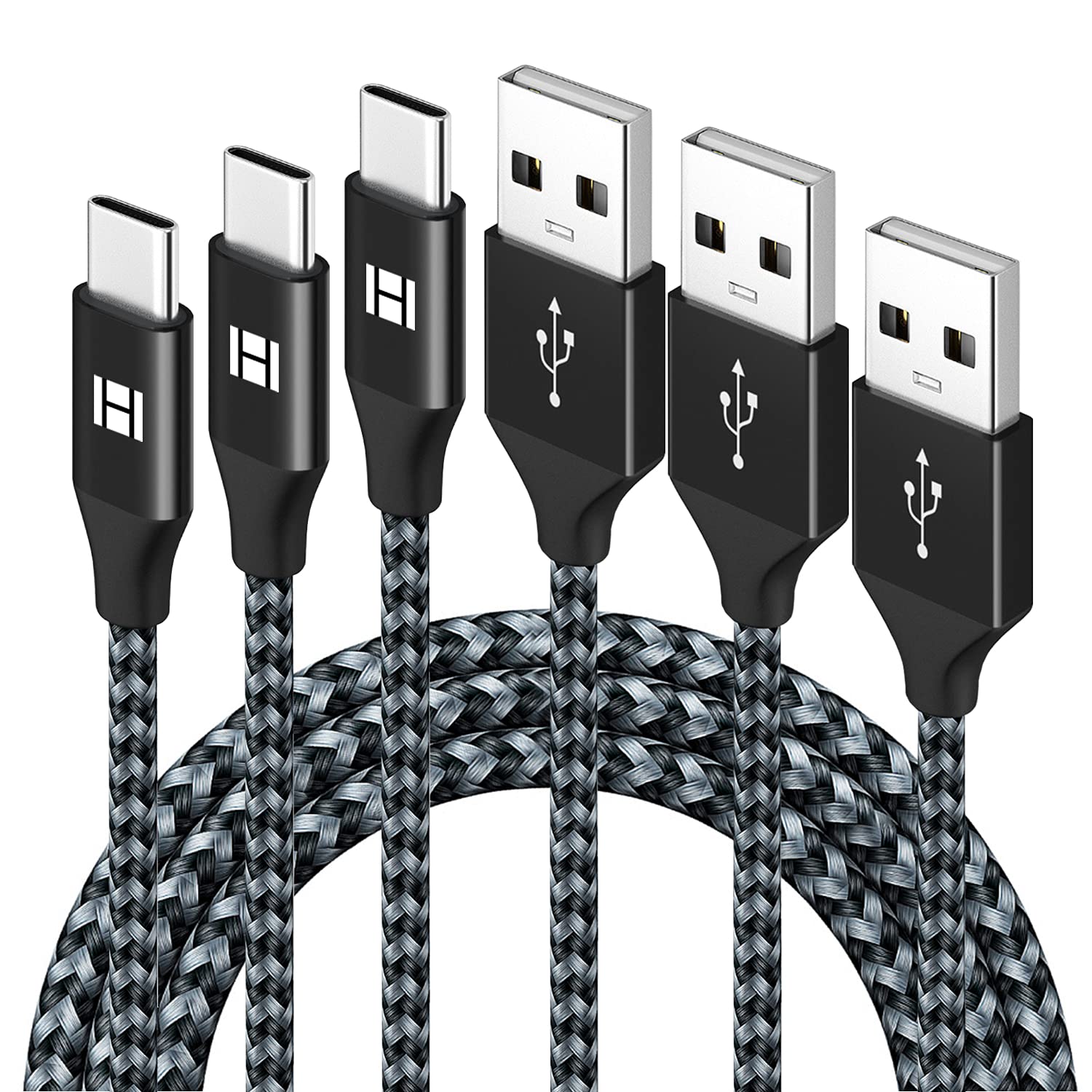 USB C Cable 1m 3.3ft, HANKN Nylon Braided USB Type C Cable 3A Fast Charging USB-C Metal Cord Data Sync Charger Cables for Samsung Galaxy Note Pixel PS5 Controller Switch Powerbank, Black