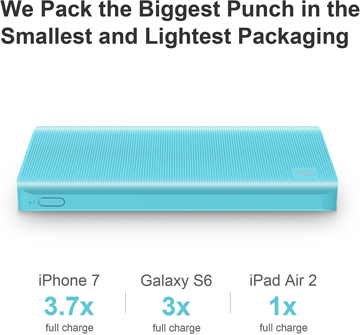 • POCKETABLE AND VERSATILE: The smallest and lightest 10000 mAh portable battery pack on the market – only 6.2 oz and 40% thinner than most 10000 mAh power banks. Perfect for your pocket or bag. Thoughtful anti-slip surface ensures a secure grip. Charges tablets, phones, connected watches, Bluetooth earphones & activity trackers via three modes: high-speed (Quick Charge 2.0), normal, and low-power. Dual input interface – fast rechargeable via Micro USB or USB-C port. USB-C port is for INPUT ONLY